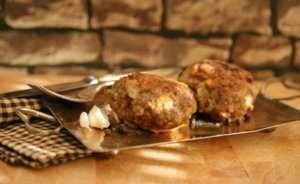- Egy nagyobb tálban a felvert tojáshoz adjuk a fűszereket és összekeverjük. Beletesszük a préselt fokhagymát, a húst és zsemlét, majd alaposan összegyúrjuk, hogy egynemű masszát kapjunk belőle.